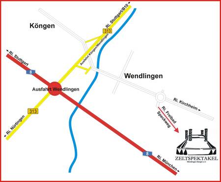 Von der A8 bzw. B313 ab Ausfahrt Wendlingen Richtung Stadtmitte/Kirchheim/Teck fahren, dann am Ortsausgang Wendlingen im Kreisverkehr Richtung "Freibad"